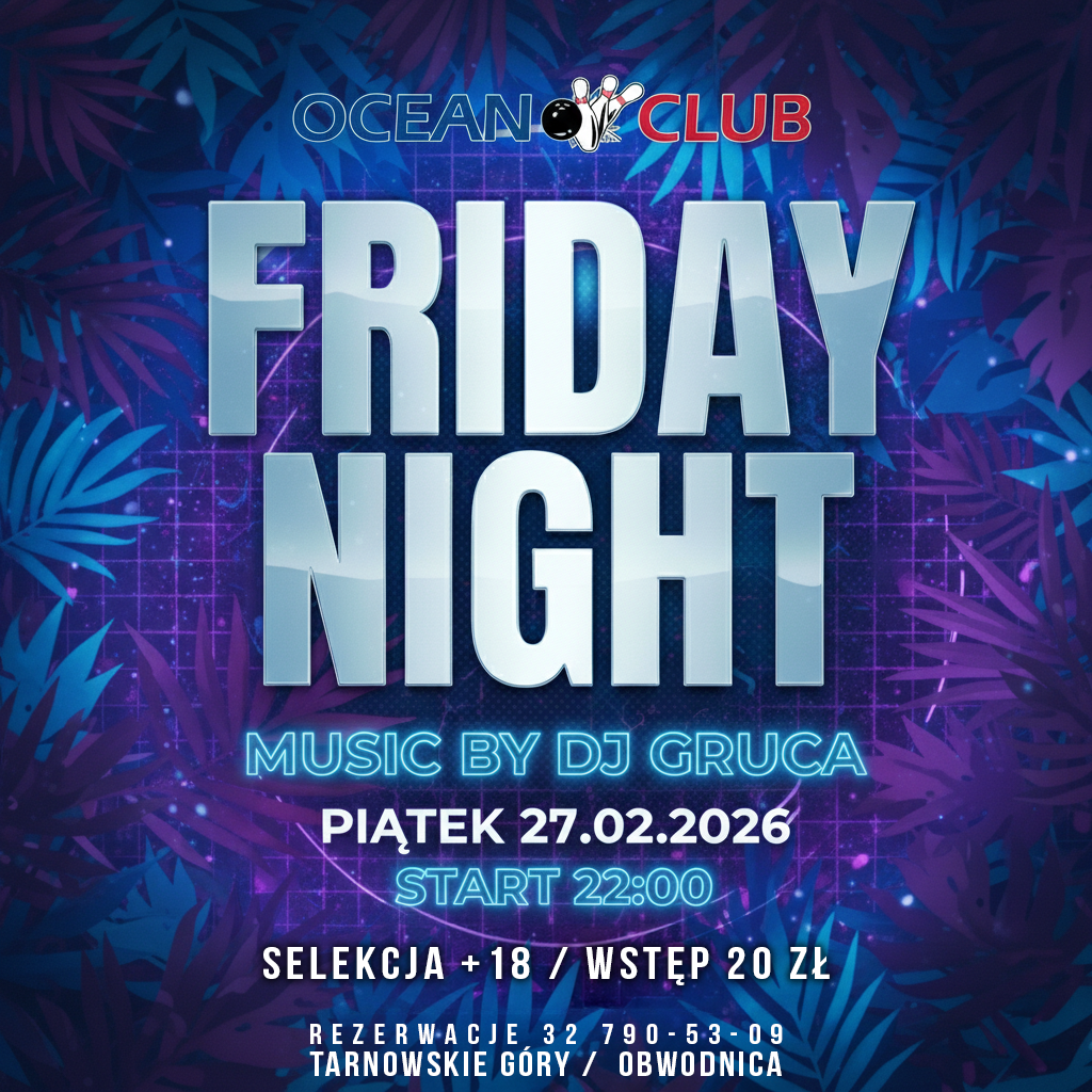 Friday Night! Selekcja: +18 Rezerwacje: 327905309 00 dni 00 godzin 00 minut 00 sekund Data 27 lut 2026 Czas 22:00 WSTĘP 20.00 ZŁ