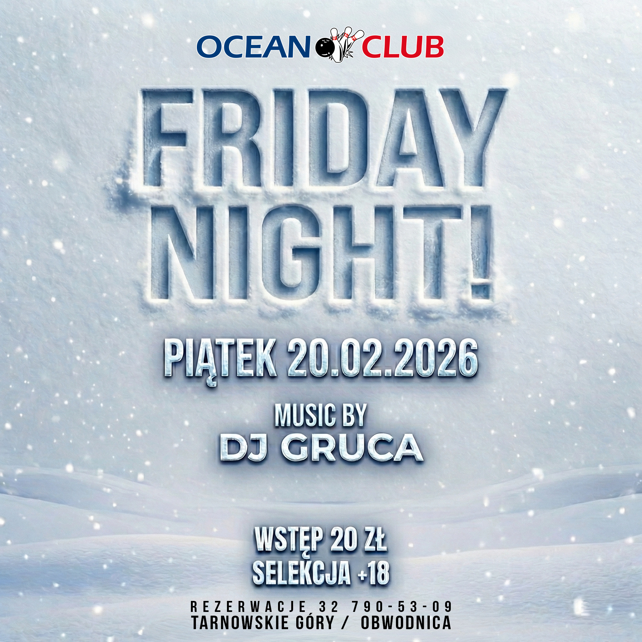 Friday Night! Selekcja: +18 Rezerwacje: 327905309 00 dni 00 godzin 00 minut 00 sekund Data 20 lut 2026 Czas 22:00 WSTĘP 20.00 ZŁ