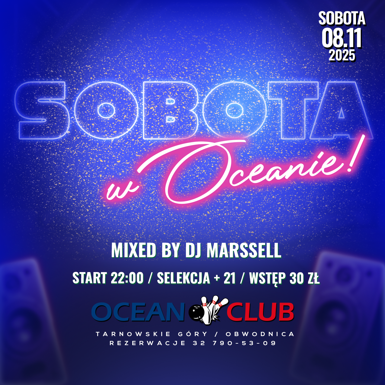 Sobota w Oceanie! Selekcja: +21 Rezerwacje: 327905309 Wydarzenie zostało zakończone. Data 08 lis 2025 Expired! Czas 22:00 WSTĘP 30.00 ZŁ