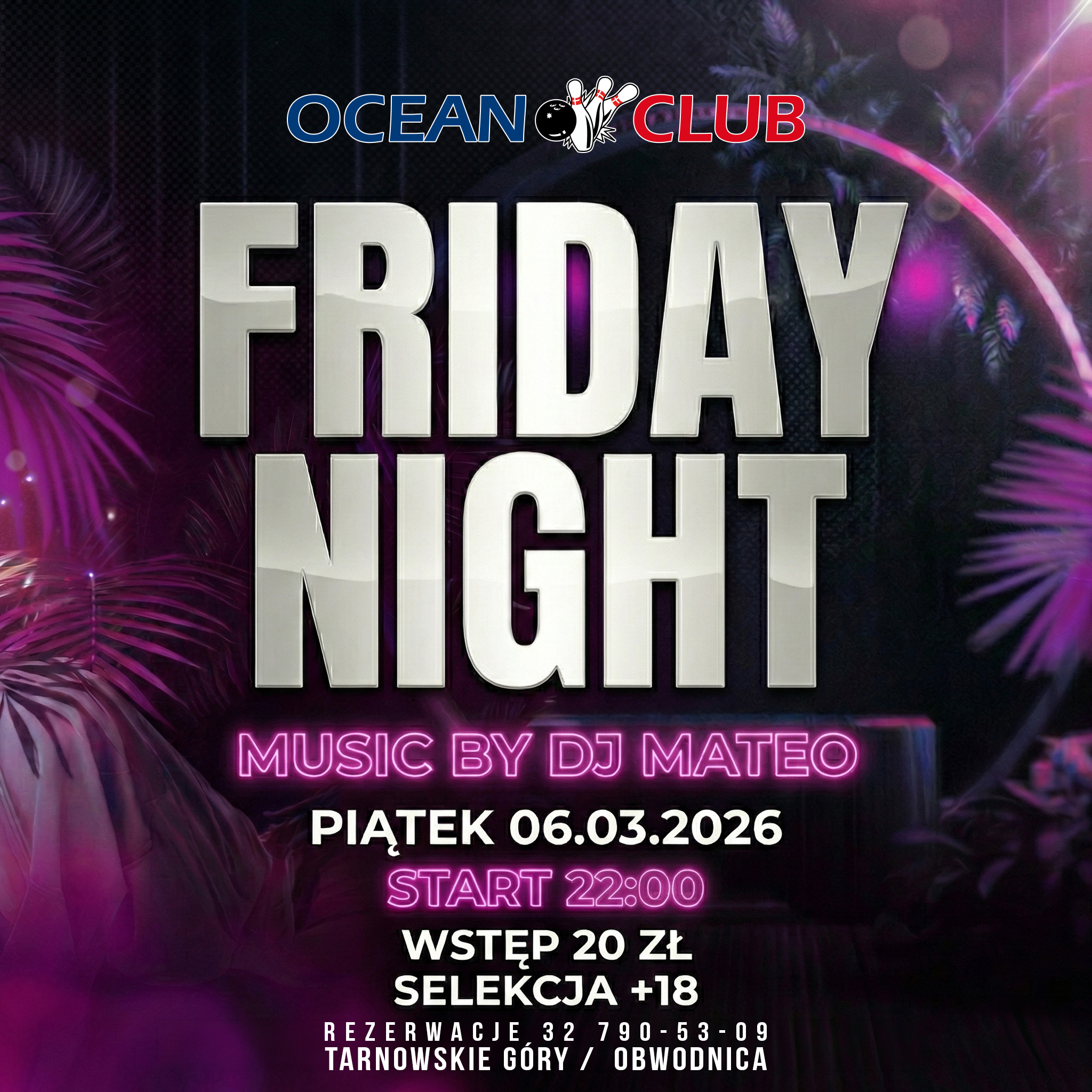 Friday Night! Selekcja: +18 Rezerwacje: 327905309 00 dni 00 godzin 00 minut 00 sekund Data 06 mar 2026 Czas 22:00 WSTĘP 20.00 ZŁ